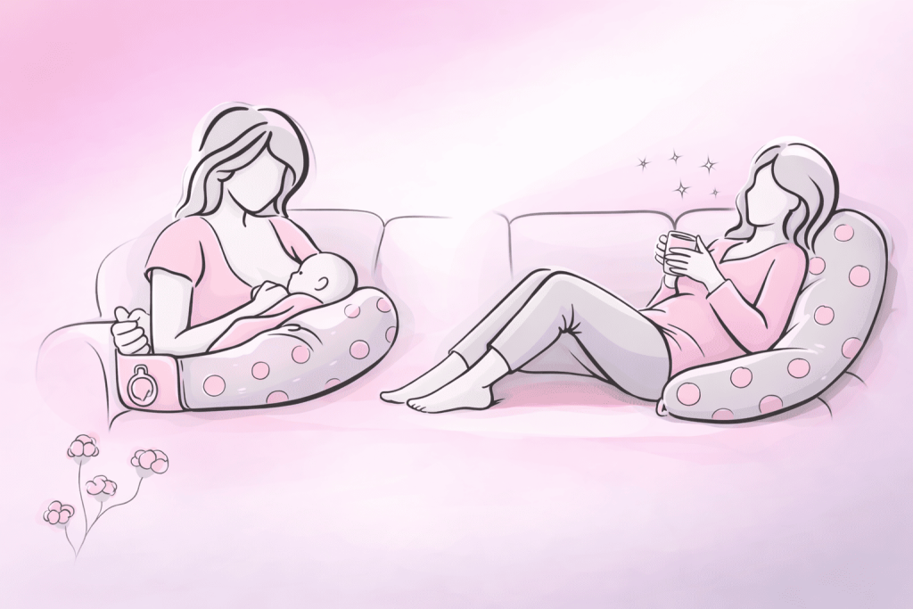 | Avant, pendant et après la grossesse | Un coussin polyvalent pour la grossesse, l’allaitement, le biberon, le repos et le soulagement des douleurs. |